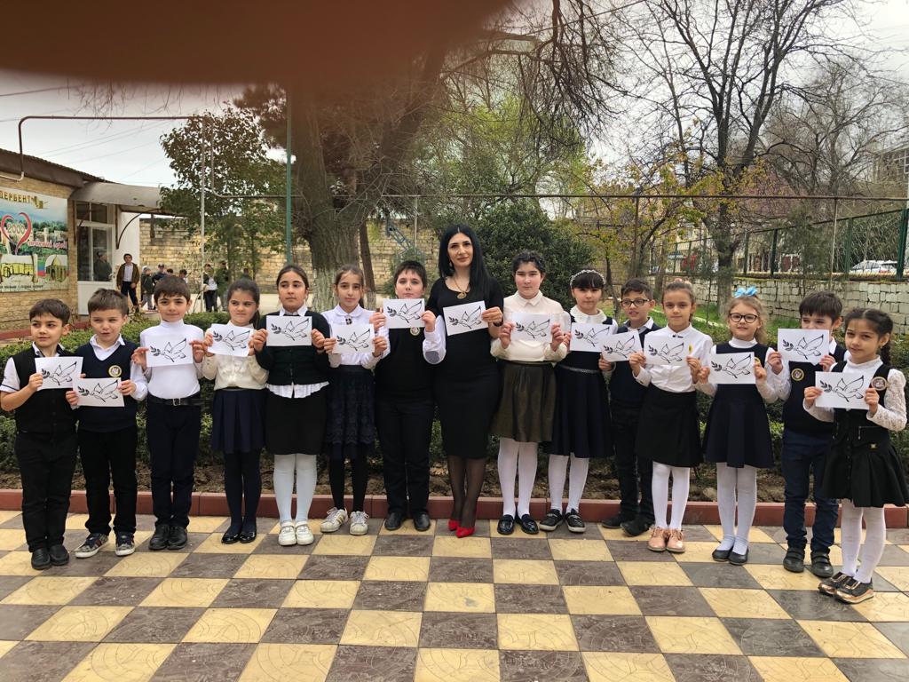 Во исполнении «Плана мероприятий по реализации Комплексного плана противодействия идеологии терроризма в РФ на 2019 г.» педагогом-организатором Махмудовой Диларой Раидиновной совместно с учащимися Прогимназии «Президент» была проведена общегородская информационно – просветительская акция «Нам нужен мирный Дагестан». В рамках проведения акции среди прохожих по пер.Красноармейский, 39 были распространены листовки с изображением голубей и со стихами о мире. В акции приняли участие 20 человек.