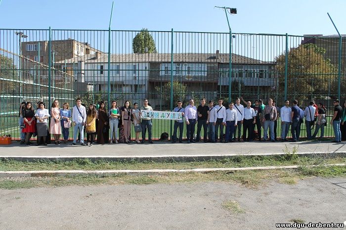 В преддверии празднования Дня единства народов Дагестана и 2000-летнего юбилея г. Дербента ,а также в рамках Комплексного плана по противодействию идеологии терроризма и экстремизма , 13 сентября 2017 года филиалом ДГУ в г. Дербенте по инициативе директора ДГУ в г.Дербенте Исмаила Завировича Абдулкеримова было проведено первенство по мини - футболу среди студентов юридического и экономического отделений.