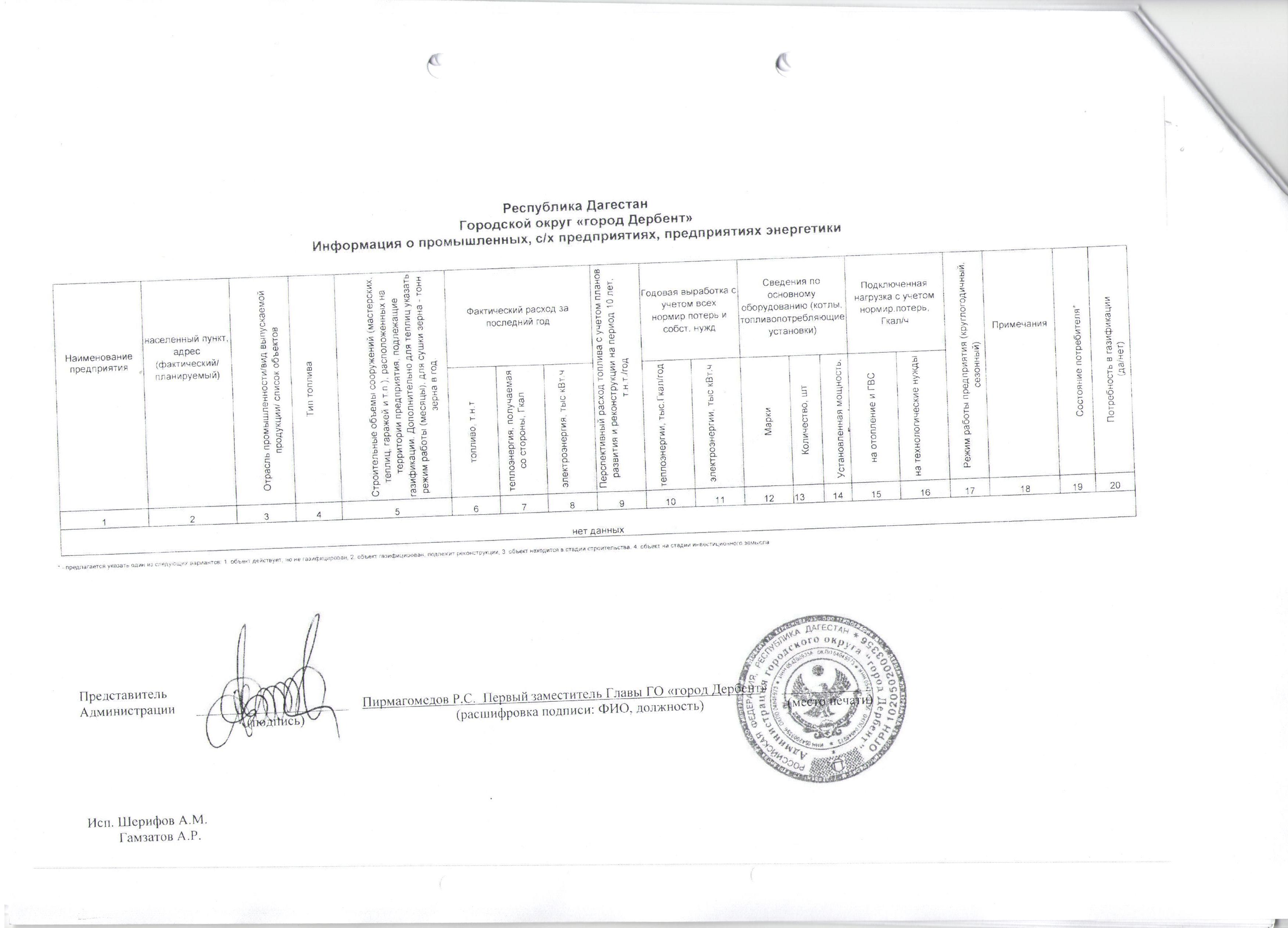 Информация о промышленных, с/х предприятиях, предприятиях энергетики ГО "г. Дербент"