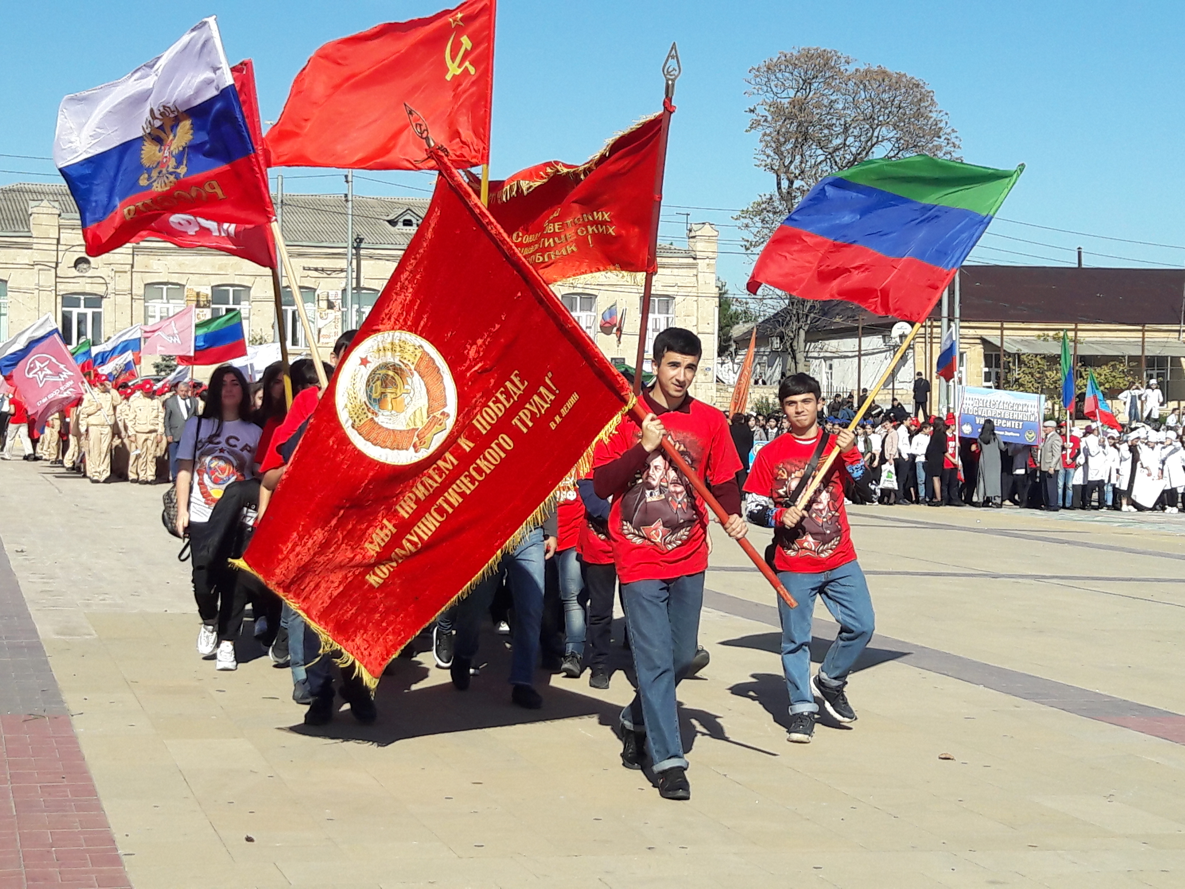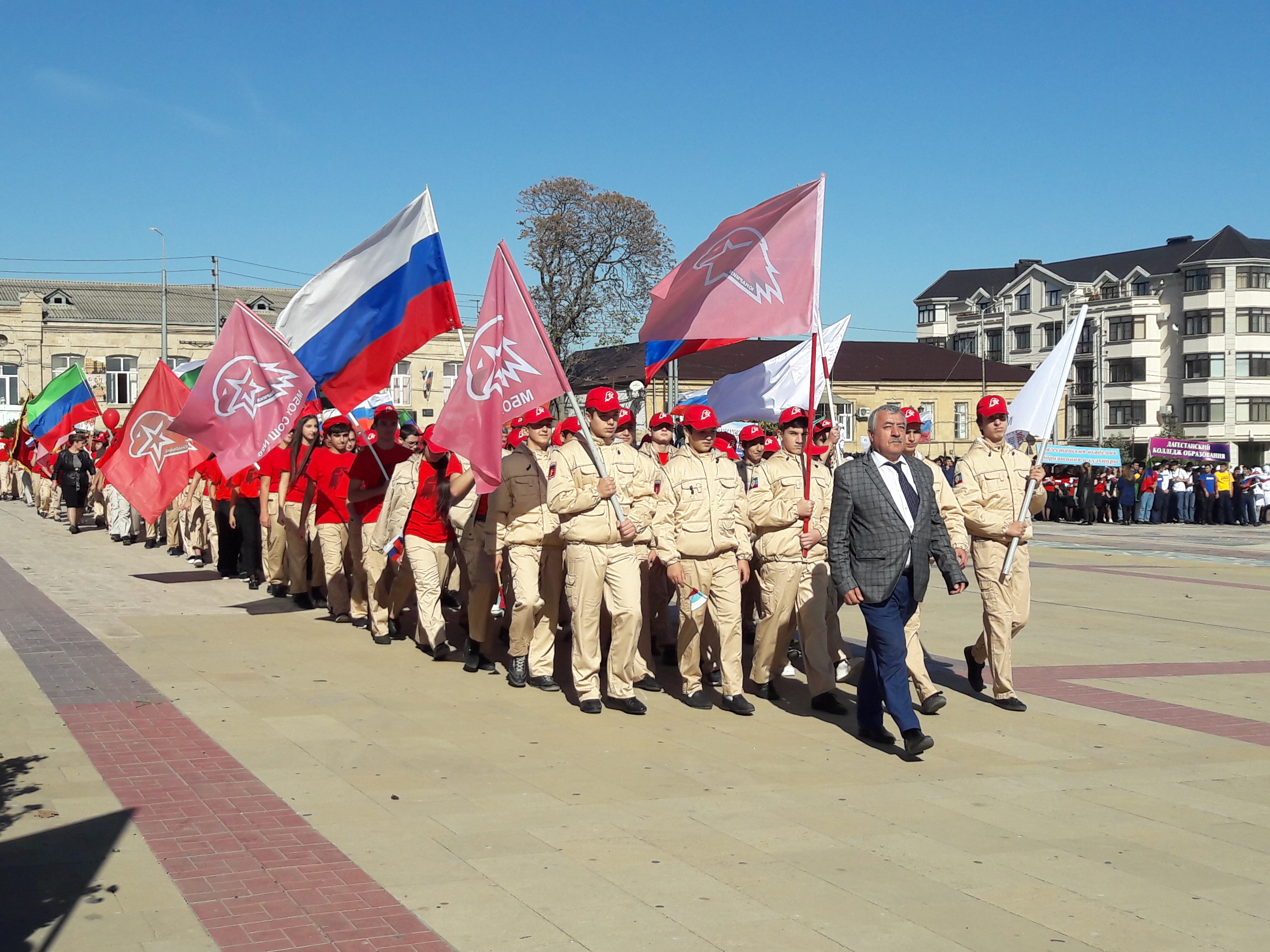 29 октября 2018 года Всесоюзному Ленинскому комсомолу исполняется 100 лет. Это большое событие в общественно-политической жизни страны, праздник всей молодежи советского периода в истории России. В честь данного мероприятия на городской площади сегодня состоялся парад, посвященный юбилею Комсомола. Эта огромная организация сплотила в своих рядах лучших представителей молодого поколения своего времени. Мощнейшее молодежное движение активно участвовало в жизни страны в годы войны и в мирное время. В торжественном параде приняли участие представители Управления культуры, спорта, молодежной политики и туризма: начальник отдела спорта - Наваи Рзаев, начальник отдела молодежной политики Султан Гамзатов, главный специалист отдела спорта - Камила Аскерова и специалист отдела спорта Валерий Юнатаев. Студентов ВУЗов и ССУЗов приветствовали