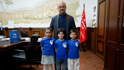 Сегодня самые юные участники Всероссийского общественного движения «Волонтёры Победы», воспитанники детских садов, встретились с главой города Дербента Ханларом Пашабековым. Ребята пригласили его на торжественное мероприятие, посвящённое Дню Победы.