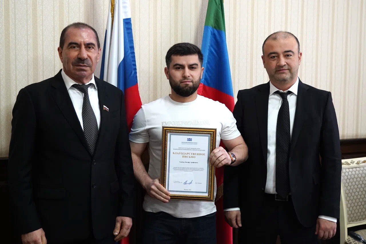 Благодарственное письмо депутата Госдумы Хизри Абакарова, в котором выражается