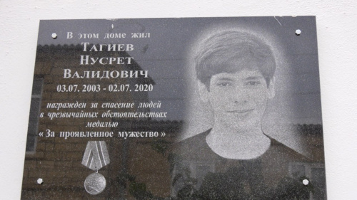 Сегодня, 10 июня, на улице Фабричная г.Дербента на фасаде дома, где жил героически погибший Нусрет Тагиев, состоялось открытие мемориальной плиты.