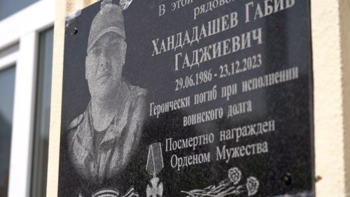 Сегодня, 26 апреля, на территории средней общеобразовательной школы №3 г. Дербента состоялось открытие мемориальной доски кавалеру ордена Мужества Габибу Хандадашеву, погибшему при исполнении воинского долга в зоне специальной военной операции.