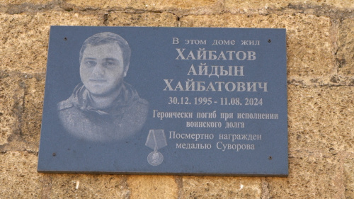 Сегодня в Дербенте открыли мемориальную доску Айдыну Хайбатову. Он погиб при исполнении воинского долга и был удостоен государственной награды — медали Суворова. Памятный знак установлен на фасаде дома, где жил герой.